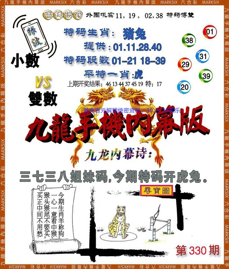 | 334期⑥肖:虎鼠马猴龙猪 |