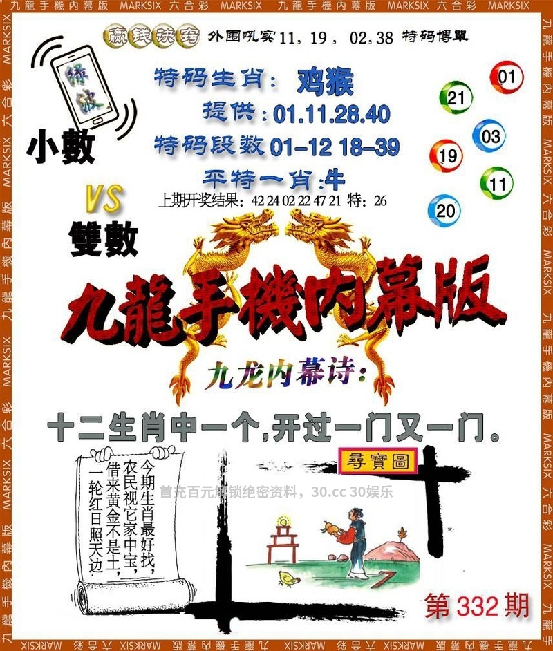 | 332期⑨肖:鸡猪牛蛇狗猴龙马兔 |